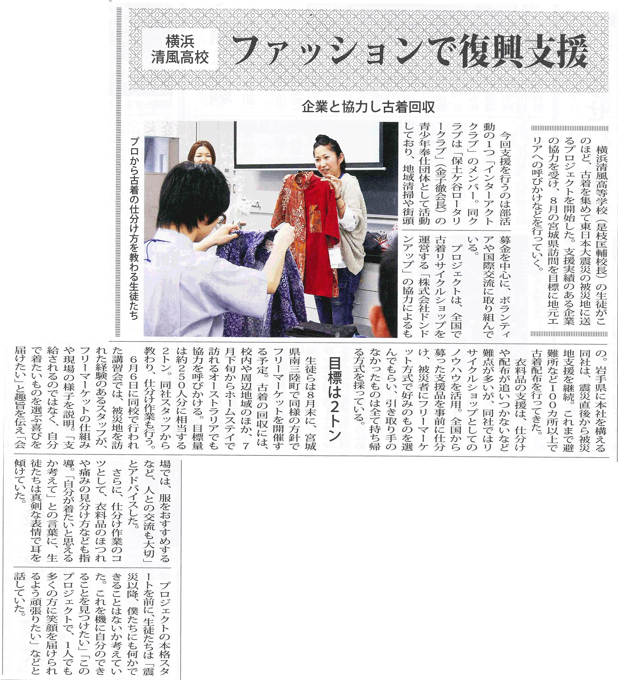 河北新報に「Remember3.11〜古着を売って被災地に笑顔を!!キャンペーン〜」について掲載されました。